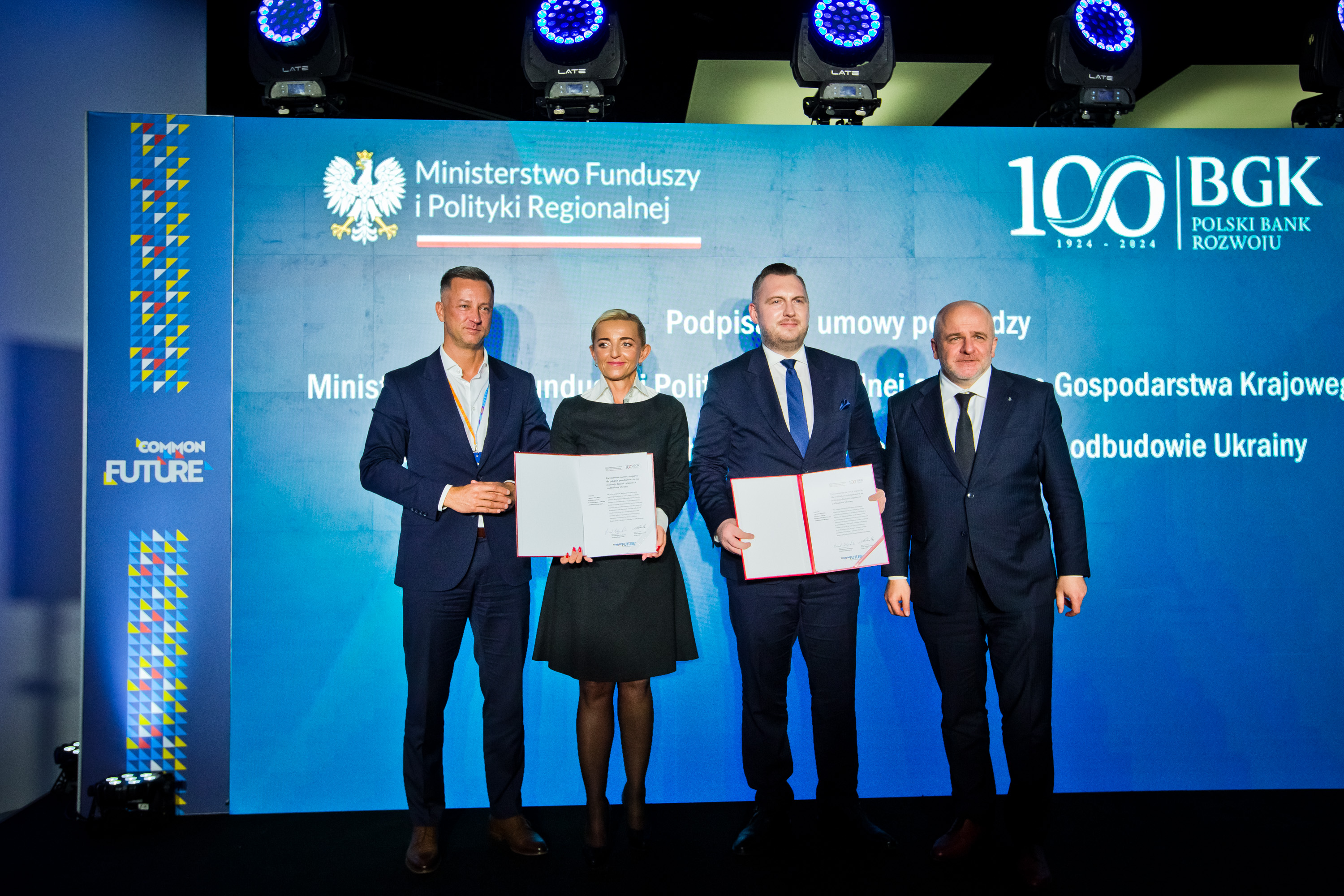Pierwsze z tych wydarzeń miało miejsce 7 października na Scenie Dobrych Praktyk, gdzie została podpisana kluczowa umowa o współpracy pomiędzy Ministerstwem Funduszy i Polityki Regionalnej a Bankiem Gospodarstwa Krajowego. Ze strony ministerstwa umowę podpisał wiceminister Konrad Wojnarowski, natomiast Bank Gospodarstwa Krajowego reprezentowała wiceprezes, prof. Marta Postuła. Porozumienie ma na celu wspieranie projektów infrastrukturalnych i regionalnych, które będą sprzyjać zrównoważonemu rozwojowi w Polsce i Ukrainie, oraz uruchamia nowy instrument wsparcia – preferencyjne pożyczki dla przedsiębiorstw realizujących działania związane z odbudową Ukrainy, prowadzone na terytorium Polski. Całkowity budżet programu wynosi 250 mln zł, z maksymalną wartością pożyczki do 10 mln zł oraz okresem kredytowania wynoszącym maksymalnie 10 lat. W ramach tego instrumentu wsparcia kwalifikują się m.in.: eksport i import produktów oraz usług związanych z Ukrainą, organizacja transportu, logistyki i magazynowania materiałów budowlanych, maszyn, technologii oraz zasobów niezbędnych do realizacji projektów w Ukrainie, a także rozwój zasobów umożliwiających udział w inwestycjach infrastrukturalnych. Program ten stanowi pilotażową inicjatywę otwierającą nowe możliwości dla przedsiębiorstw.