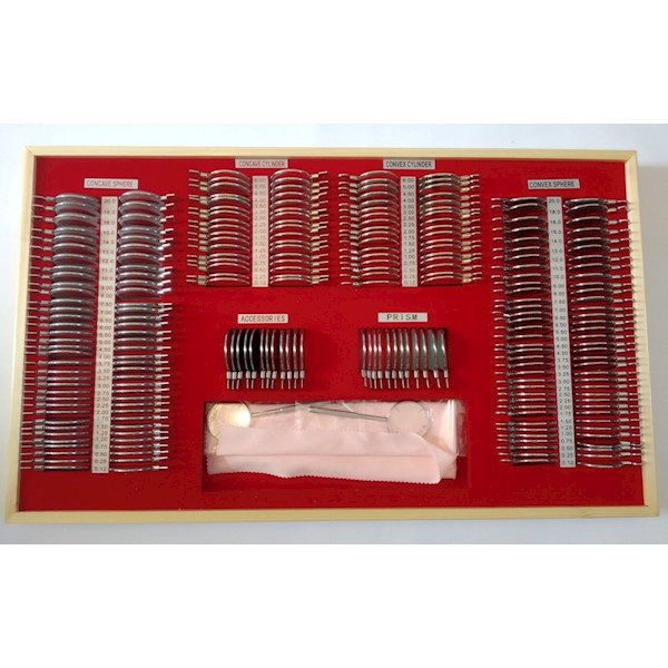 Szkła w oprawach metalowych,srebrnych, wąskich przystosowanych do perymetrii. Średnica szkła - 38 mm