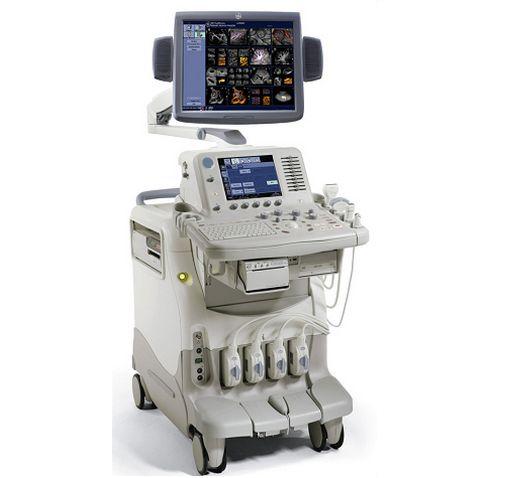 Cyfrowy, wysokiej klasy, a także wielozadaniowy aparat USG z poczwórnym, cyfrowym układem formowania wiązki ultradźwięków. Głowice elektroniczne wieloczęstotliwościowe, w tym o konstrukcji matrycowej. Tryby pracy: obrazowanie rombowe, Virtual Convex, Logiq View (obrazowanie panoramiczne), obrazowanie z użyciem środków kontrastujących, obrazowanie w skrzyżowanych ultradźwiękach, obrazowanie harmoniczne 4-tej generacji. Unikatowa technologia B-FLOW do obrazowania przepływów w naczyniach w trybie B-mode. Algorytm adaptacyjny SRI do redukcji artefaktów szumowych w obrazach B-mode i dodatkowego podniesienia jakości obrazowania. Szybkie algorytmy do prezentacji 3-D w trybie "free hand". Głowice i obrazowanie 3D i 4D. Automatyczna optymalizacja dla B-mode, PW i CD. Łatwość obsługi przez programowalny, dotykowy i kolorowy ekran LCD. Pełna kompatybilność z komputerami i sieciami komputerowymi. Wbudowana baza danych pacjentów z możliwością zapisu obrazów i pętli obrazowych. Zapamiętywanie obrazów w postaci surowych danych ultrasonograficznych, gwarantuje to możliwość wykonywanie wielu funkcji postprocessingu na zachowanych danych. Wbudowana nagrywarka CD-R do archiwizacji i eksportu obrazów (formaty: DICOM, JPEG, AVI). Możliwość sterowania funkcjami aparatu za pomocą głosu operatora.