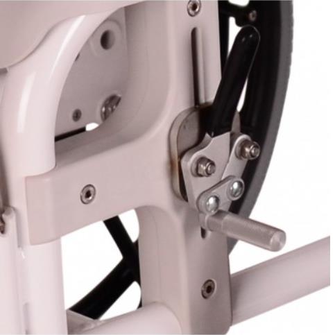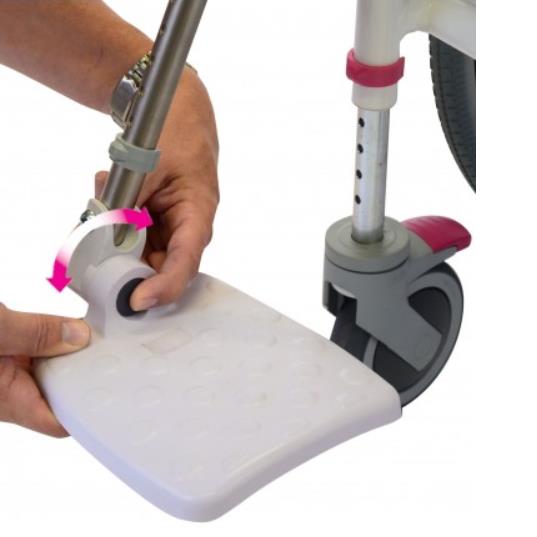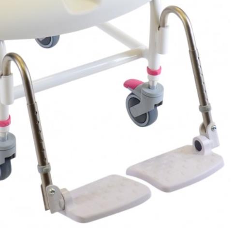 Krzesła prysznicowe Nielsen Line są standardowo wyposażone w regulowane podnóżki. Oparcie z elastycznego plastiku. Alternatywna wersja z oparciem z siatki - model 313031. Wersja  bez kół - model 313030.