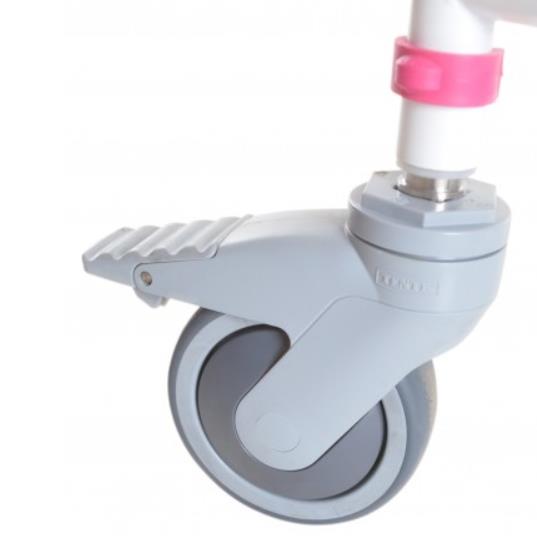 - Koła 100 mm z zamkniętym obwodem zmniejszającym ryzyko blokowania kół przez zabrudzenia