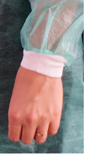Wykonany z włókniny polipropylenowej o grubosci 20g/m2, rękaw wykończony mankietem, wiązany na trok w pasie oraz szyi.