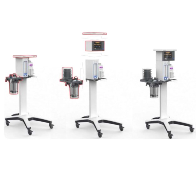 Veta 3 skonfigurowana jest w wersji wózkowej jako podstawowa stacja do prowadzenia narkozy wziewnej.