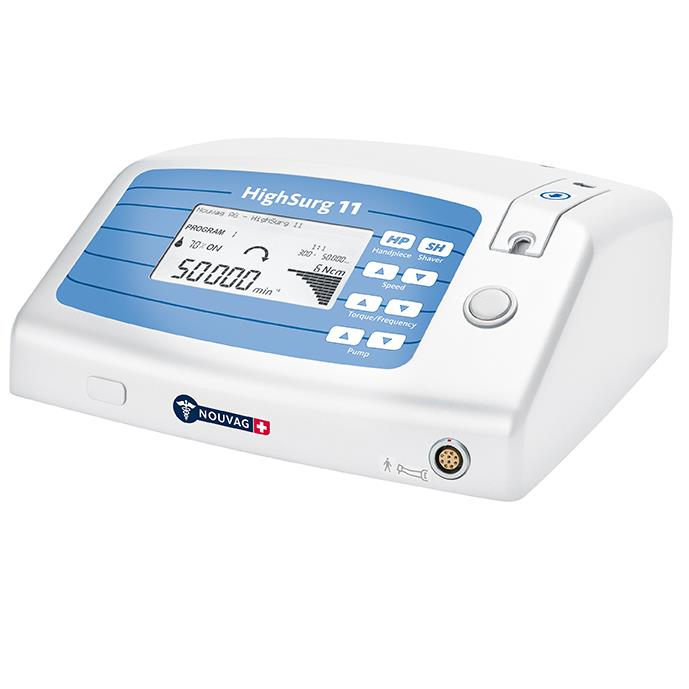 HighSurg 11 jest urządzeniem dwufunkcyjnym. Może być wykorzystywane jako wiertarka (do 50 000 obr/min) podczas operacji otologicznych oraz jako shaver w operacjach endoskopowych zatok FESS. System HighSurg 11 wyposażony jest w elektronicznie kontrolowaną pompę perystaltyczną z regulacja przepływu. Wbudowany na przednim panelu duży i czytelny wyświetlacz LCD informuje o wszystkich parametrach pracy urządzenia. HighSurg 11 wyposażony jest w wodoszczelny regulator nożny, dzięki któremu chirurg może samodzielnie zmieniać ustawienia podczas zabiegu. Konstrukcja i funkcjonalność urządzenia spełnia najwyższe standardy, a jakość i precyzja wykonania gwarantują bezawaryjną pracę.