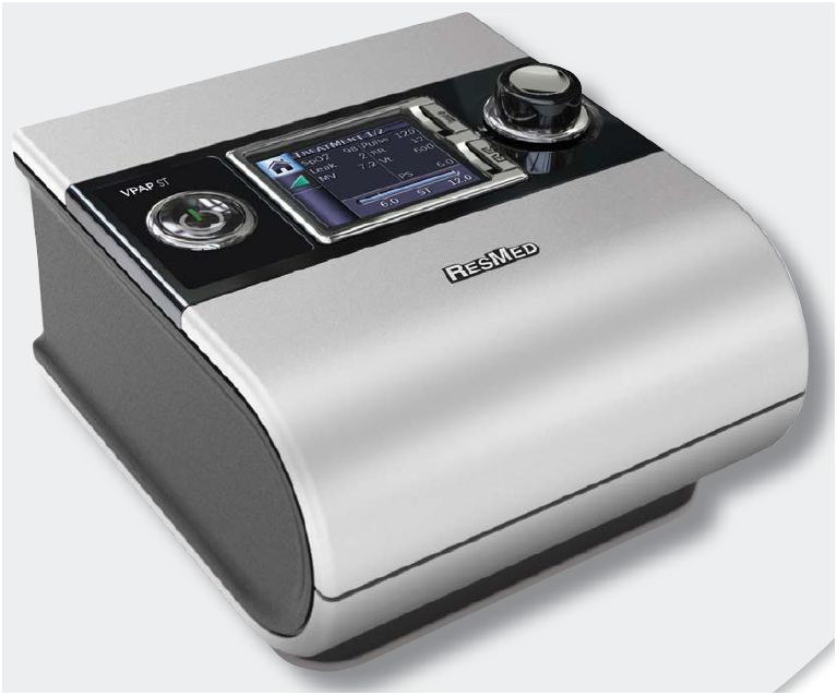 Seria VPAP ST zapewnia skuteczną nieinwazyjną wentylacjię płuc będącą odpowiednim rozwiązaniem do przeprowadzenia każdej terapii dwupoziomowej do wspomagania oddechu typu BILEVEL z możliwością pracy trybach CPAP, BILEVEL S, BILEVEL T, BILEVEL ST. Aparat przystosowany do terapii pacjentów z zaburzeniami typu OBS, przewlekłe zapalenie oskrzeli z rozedmą (POCHP), zaburzenia mechaniki oddechowej np. w skutek skoliozy, zaburzenia nerwowo- mięśniowe, zaburzenia oddechowe pochodzenia centralnego itp. Unikalna seria aparatów BiLevel firmy ResMed, wykorzystuje technologie: Vsync, do automatycznej kompensacji przecieku powietrza i minimalizacji wysiłku oddechowego pacjenta oraz TiControl, do dopasowania czasu wdechu i efektywnej synchronizacji aparatu z pacjentem. Aparat VPAP ST reaguje na oddech pacjenta (moment rozpoczęcia wdechu/wydechu). Oznacza to, że pacjent wyzwala aparat wdechem/wydechem, synchronizuje się, a nastepnie aparatspontanicznie podąża za oddechem pacjenta poprzez podawanie odpowiednich poziomów ciśnień. W momencie, gdy zabraknie oddechu pacjenta lub częstość oddechowa spada poniżej ustalonego poziomu, aparat zacznie wspomagać oddech pacjenta zgodnie z ustawieniami zaleconymi przez lekarza specjalistę (możliwa do ustawienia częstość oddechowa od 5 do 50 oddechów/min.). Nowa technologia „Łatwy oddech” to opatentowany system pneumatyczny, który zwiększa komfort używania (lepsza synchronizacja z oddechem pacjenta, mniejszy wysiłek przy oddychaniu) i jakość pracy urządzenia. Aparat napędzany przez unikalny dwukomorowy silnik, pracuje przy dużo mniejszych prędkościach niż w tradycyjnych urządzeniach. Technologia ta zapewnia znacznie cichszą pracę aparatu (tylko 24 dB) i niebywałą stabilność ciśnienia.